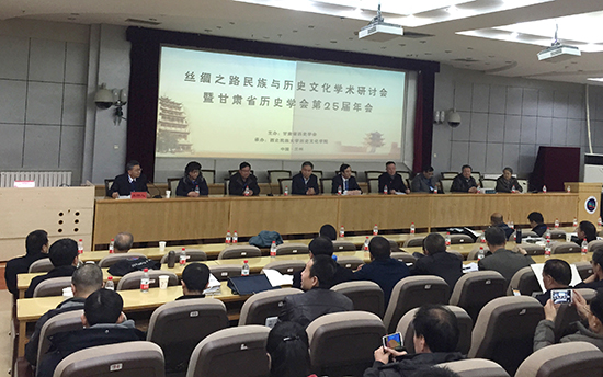 研討會(huì)圍繞“絲綢之路民族與歷史文化”等主題展開學(xué)術(shù)研討。蘭州大學(xué)王希隆教授、敦煌研究院楊富學(xué)教授、西北民族大學(xué)周松教授、隴東學(xué)院馬嘯教授、河西學(xué)院賈小軍教授、我校歷史文化學(xué)院尚季芳教授分別作了題為《絲綢之路的北移、發(fā)展與衰落》《絲綢民族與文化交錯(cuò)——以出土資料為中心》《明代早期河西走廊陸路交通的發(fā)展變化》《左宗棠對(duì)“一帶一路”的貢獻(xiàn)》《絲綢之路視野下的河西民族變遷申論》《抗戰(zhàn)時(shí)期日本轟炸甘肅與反轟炸研究》的主題報(bào)告。與會(huì)專家還就《甘肅多元民族文化共識(shí)》進(jìn)行了討論。