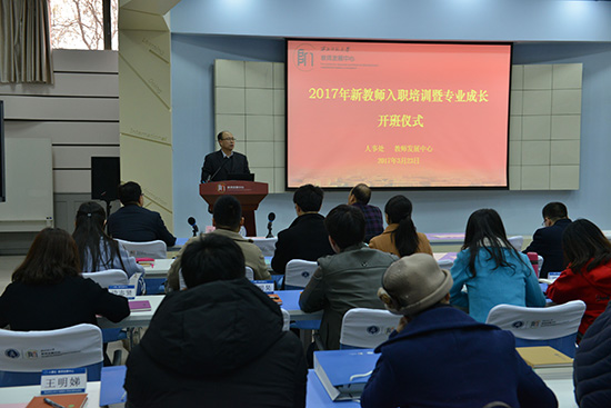 3月23日下午,學校2017年新入職教師專業成長培訓班在教師發展中心開班。2017年新入職的48名教師、5名教輔和人事處、教務處、教師發展中心負責人及各學院黨委書記共計80人參加了開班儀式。