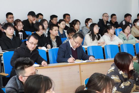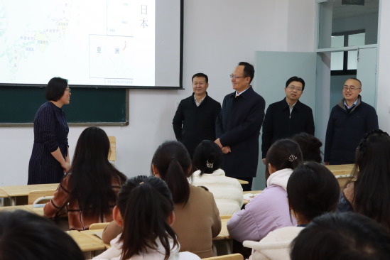 課中,賈寧仔細聽課,認真記錄,檢查了解教師的授課內容、教學方法和教學效果,細心觀察學生們的學習狀態和精神風貌。課后,賈寧對趙秋靜的授課作了點評,對趙老師的教學方法和教學效果給予充分肯定,認為趙老師準備充分、熟悉內容,講課生動、解析明白、案例生動,并就進一步提升教學效果提出了意見和建議。賈寧強調,思想政治理論課是落實高校立德樹人根本任務的關鍵課程,要求學校思政課教師要著力提升思政課教學質量、努力打造新時代高水平思政“金課”。
