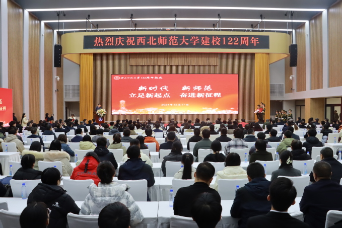 春華秋實歲序更替,百廿二載華章日新。12月17日下午,西北師大舉行建校122周年紀念會議。黨委書記賈寧主持會議,校長、黨委副書記王占仁出席并講話。蘭州城市學院黨委副書記、校長韓高年,甘肅開放大學黨委副書記、校長鄧小娟,蘭州資源環境職業技術大學黨委副書記、副校長李文生及西北師大校領導王全進、焦愛勝、張明軍、王文昇、趙鑫、馬世年、閻巖出席,黨委常委、黨委組織部部長周琳輝及校友代表,各學院、各單位、機關各部門負責人,離退休教師代表、師生代表等共計350余人共祝西北師大122周年華誕。