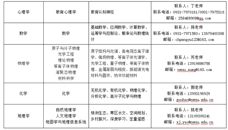學校人事處聯系人:陳老師,聯系電話:0931-7971972,郵箱:rscszk@nwnu.edu.cn