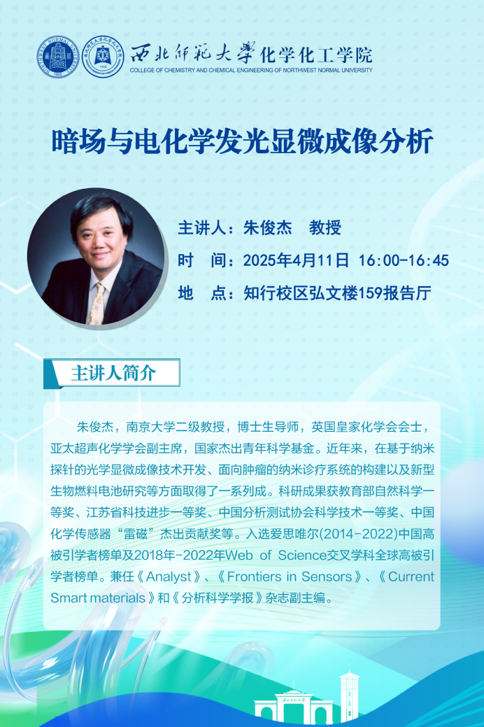 應(yīng)西北師范大學(xué)化學(xué)化工學(xué)院邀請(qǐng),南京大學(xué)朱俊杰教授將來我校作學(xué)術(shù)報(bào)告。