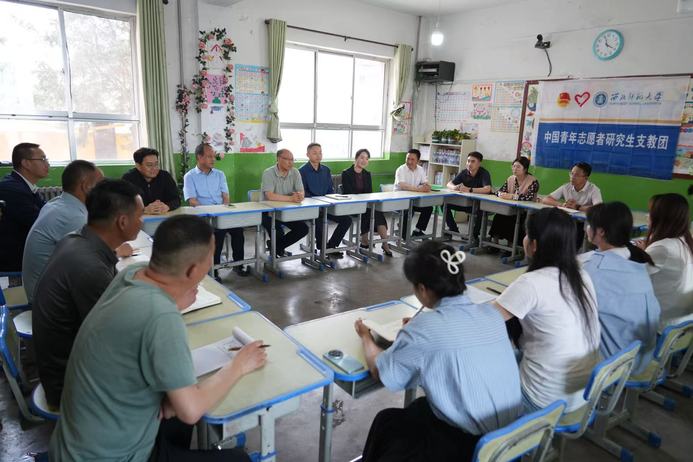 王文昇一行看望慰問了研究生支教團志愿者,實地了解了支教學生的學習、工作、生活情況和科妥小學辦學情況,并與當地有關部門負責人、支教團成員進行交流座談。