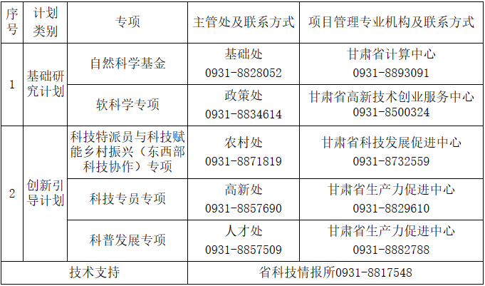 科學技術廳主管處室及項目管理專業(yè)機構聯(lián)系方式: