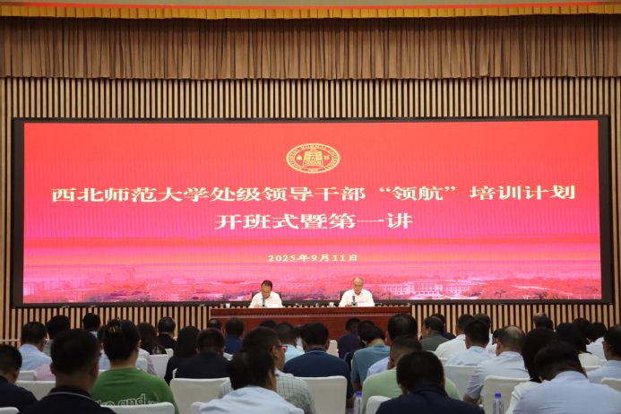 9月11日下午,西北師大舉辦第一期處級領導干部“領航”培訓計劃開班式,黨委書記賈寧作專題輔導報告,校長王占仁主持開班式,全體在家校領導出席。學校各單位黨政負責人、第一期處級干部“領航”計劃及年輕干部“火炬”培育計劃全體學員參加。