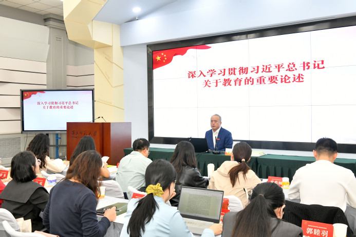 9月18日,校長王占仁以《深入學習貫徹習近平總書記關(guān)于教育的重要論述》為題為我校2025年新入職教師作首場專題輔導報告。全體新入職參訓教師和人事處相關(guān)負責人現(xiàn)場聆聽報告。