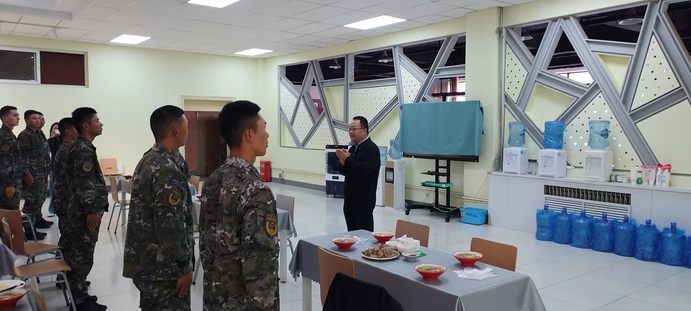校領導一行深入承訓教官住宿區域,實地察看住宿條件,仔細詢問官兵日常生活保障情況,反復叮囑相關部門要全力解決官兵們的實際需求。在餐飲區,詳細了解伙食供應品類、每日營養搭配及食品衛生安全管理流程,并與在場官兵親切交流、共進午餐。