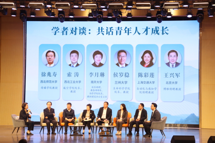 在學(xué)者對(duì)談環(huán)節(jié),蘭州大學(xué)侯歲穩(wěn)教授、南開(kāi)大學(xué)李月琳教授、上海交通大學(xué)陳彩蓮教授、西北工業(yè)大學(xué)索濤教授、北京大學(xué)王興軍教授、西北師范大學(xué)徐兆壽教授以“西部高校青年教師成長(zhǎng)”為主題,圍繞“加強(qiáng)學(xué)術(shù)研究的跨學(xué)科交叉融合”“建立和打造優(yōu)秀教學(xué)和科研團(tuán)隊(duì)”“緩解青年教師壓力,改進(jìn)人才評(píng)價(jià)”“構(gòu)建青年人才與學(xué)校事業(yè)相互成就的協(xié)同機(jī)制”“西部高校青年人才引育留用機(jī)制建設(shè)”等方面展開(kāi)深入探討。