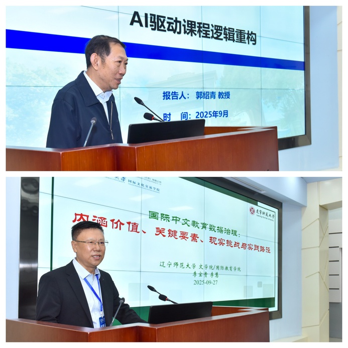 本次研討會下設主旨報告、專題研討、青年學者論壇等環(huán)節(jié)。沈陽師范大學國際教育學院院長張偉、西南大學國際學院院長胡琳、華語教學出版社副總編輯賈巍巍及世界漢語教學學會智慧教育分會理事長王錦紅分別圍繞國際中文教育數(shù)智化發(fā)展等方面主持了四場報告會;在專題研討階段,西北師范大學郭紹青教授闡述了AI對課程目標、資源與環(huán)境的重塑作用;北京語言大學鄭艷群教授指出國際中文教育正從“技術(shù)接納”邁向“教學重構(gòu)”階段;遼寧師范大學李寶貴教授系統(tǒng)闡釋了“國際中文教育數(shù)據(jù)治理”的內(nèi)涵、關(guān)鍵要素以及協(xié)同治理的實施路徑。此外,首都師范大學姜國權(quán)、西北師范大學武和平、山東大學宋飛、山東師范大學鄭翠、美國圣路易斯華盛頓大學梁霞、北京語言大學姜麗萍、智慧宮集團張時榮、重慶城市管理職業(yè)學院孫玉中、中文聯(lián)盟陳敏等專家學者,分別從課堂教學重構(gòu)、資源平臺建設、師資隊伍培養(yǎng)、數(shù)字素養(yǎng)培訓等方面進行了深入交流;在青年學者論壇上,多所高校青年學者就人工智能融入中文教育提出新見解。