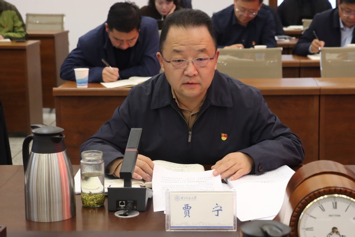 賈寧在講話中強(qiáng)調(diào),《習(xí)近平談治國理政》第五卷是新時(shí)代中國共產(chǎn)黨人堅(jiān)持和發(fā)展中國特色社會(huì)主義的最新理論結(jié)晶,是我們進(jìn)一步學(xué)習(xí)貫徹習(xí)近平新時(shí)代中國特色社會(huì)主義思想的權(quán)威教材。我們要學(xué)好用好這一重要著作,堅(jiān)持全面系統(tǒng)學(xué),既要把握好第五卷與前四卷的理論連續(xù)性與整體性,又要掌握好第五卷提出的一些新戰(zhàn)略、新觀點(diǎn)、新論斷、新要求,準(zhǔn)確學(xué)習(xí)領(lǐng)會(huì)習(xí)近平新時(shí)代中國特色社會(huì)主義思想的最新理論成果和總書記對黨和國家事業(yè)發(fā)展的一系列重大時(shí)代課題的深刻思考和科學(xué)判斷。要堅(jiān)持深入思考學(xué),認(rèn)認(rèn)真真讀原著、學(xué)原文、悟原理,準(zhǔn)確理解和把握標(biāo)識(shí)性概念、原理性成果的理論邏輯、深刻內(nèi)涵和實(shí)踐要求,真正掌握其中蘊(yùn)含的立場觀點(diǎn)方法,做到知其言更知其義、知其然更知其所以然。要堅(jiān)持聯(lián)系實(shí)際學(xué),大力弘揚(yáng)理論聯(lián)系實(shí)際的馬克思主義學(xué)風(fēng),突出問題導(dǎo)向、實(shí)踐導(dǎo)向和效果導(dǎo)向,做到學(xué)思用貫通、知信行統(tǒng)一,將中國式現(xiàn)代化宏偉藍(lán)圖與學(xué)校發(fā)展規(guī)劃、學(xué)科建設(shè)、人才培養(yǎng)等各項(xiàng)工作相貫通,切實(shí)把學(xué)習(xí)成果轉(zhuǎn)化為推動(dòng)事業(yè)發(fā)展的強(qiáng)大動(dòng)力和具體舉措。要堅(jiān)持長效跟進(jìn)學(xué),把深入學(xué)習(xí)宣傳第五卷作為當(dāng)前和今后一個(gè)時(shí)期的重大政治任務(wù),同學(xué)習(xí)貫徹習(xí)近平總書記視察甘肅重要講話重要指示精神、黨的二十屆四中全會(huì)精神貫通起來一體推進(jìn),持續(xù)開展專題學(xué)習(xí)和交流研討,確保學(xué)習(xí)的系統(tǒng)性與連貫性,不斷推進(jìn)習(xí)近平新時(shí)代中國特色社會(huì)主義思想入腦入心、見行見效。