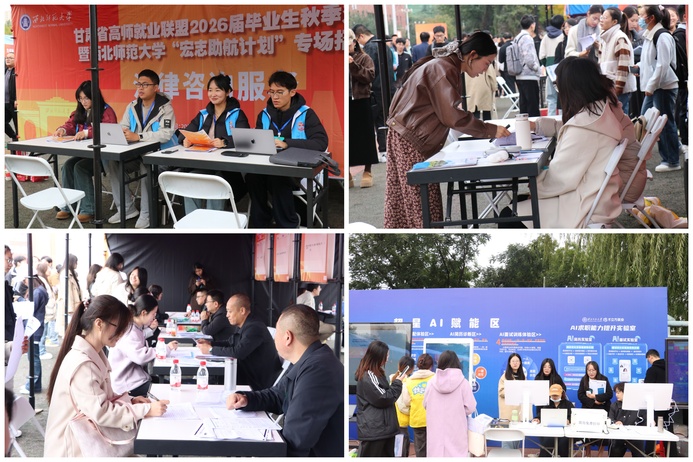 10月18日,甘肅省高師就業聯盟2026屆畢業生秋季雙選會暨西北師范大學“宏志助航計劃”專場招聘會在西北師范大學云亭校區舉行。此次活動由甘肅省教育廳主辦、西北師范大學承辦,省內8所師范類高校共同協辦。