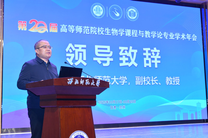 開幕式上,張明軍回顧了西北師大的辦學傳統,重點介紹了學校在生物學學科建設、科學研究等方面取得的成果。他表示,本次年會為全國生物學教育工作者提供了交流平臺,期待通過與會專家的深入研討和思想碰撞,進一步拓展學術視野,激發教育創新思維,為生物學教育改革與發展注入新動能。