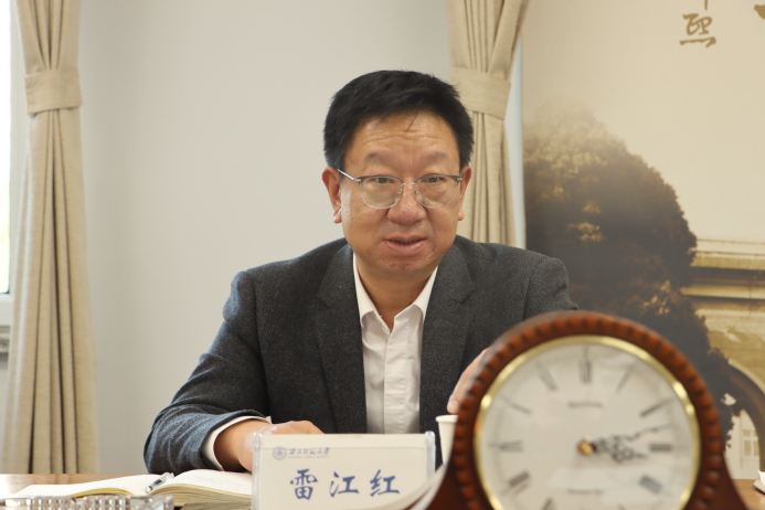 賈寧對雷江紅一行的到來表示熱烈歡迎,并從校史傳承、辦學定位、人才培養特色、科研創新成果等方面介紹了學校的總體情況。賈寧表示,蘭州資源環境職業技術大學作為甘肅省唯一連續2輪入選國家“雙高計劃”高水平學校建設單位的職業本科高校,在職業教育領域形成了鮮明特色和顯著優勢,創造了甘肅高職教育的“資環樣板”,為甘肅高等職業教育發展樹立了標桿。兩校同處隴原大地,地緣相近、文脈相融,合作根基深厚。近年來,已在思政課師資共建、優質課程資源共享、大中小學思政課一體化建設等方面取得實質性合作成果。希望雙方通過此次交流,能進一步發揮各自優勢,持續推進務實合作,進一步拓展合作領域、創新合作模式,以開放共享的姿態緊密協作,攜手打造甘肅教育協同發展新格局。