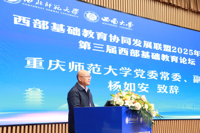 本次論壇以“協同 創新 行動:西部基礎教育高質量發展”為主題,緊扣國家基礎教育發展戰略,聚焦新時代西部基礎教育發展的重點難點問題,有效深化了師范大學和中小學在基礎教育領域的共識與合作,共同為破解發展難題、促進資源共享、建設教育強國貢獻西部教育力量。