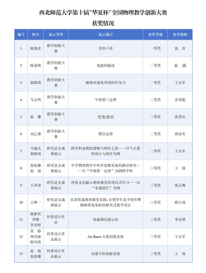 西師學子在第十屆華夏杯全國物理教學創新大賽中榮獲佳績