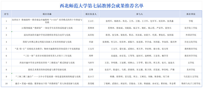 11月14日至17日,由北京師范大學主辦第七屆中國教育創新成果公益博覽會在廣東珠海國際會展中心舉辦。西北師范大學推出的10項教學創新成果入選參展,充分展現了學校在教育改革與創新領域的深厚積淀。