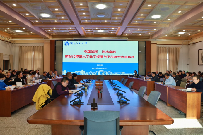張明軍以《守正創(chuàng)新,追求卓越——新時(shí)代師范大學(xué)教學(xué)提質(zhì)與學(xué)科躍升改革路徑》為題,圍繞人才培養(yǎng)與學(xué)科建設(shè),從堅(jiān)守底線、深耕長線、勇攀高線三個(gè)維度系統(tǒng)闡述了學(xué)院教學(xué)提質(zhì)和學(xué)科躍升的發(fā)展路徑。他指出,要嚴(yán)守教學(xué)紀(jì)律規(guī)范,打造健康學(xué)術(shù)生態(tài),嚴(yán)守程序公正原則,筑牢規(guī)范安全的辦學(xué)根基,守護(hù)學(xué)院行穩(wěn)致遠(yuǎn)的“生命線”;要構(gòu)建持續(xù)改進(jìn)的質(zhì)量文化,以全程精耕細(xì)作厚植高質(zhì)量人才培養(yǎng)沃土,夯實(shí)學(xué)院核心競爭力的“質(zhì)量線”;要打造具有師大特色的教學(xué)卓越品牌,構(gòu)筑高峰凸顯的學(xué)科生態(tài),樹立突破性發(fā)展的卓越標(biāo)桿,勇攀學(xué)院突破發(fā)展的“卓越線”。